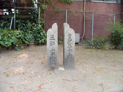 下部が埋もれていることから、この公園も地上げされたことや、この辺りが「三軒屋濱」と