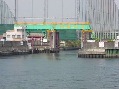 の項参照・三軒家運河とも言っています)の出口に設けられた、防潮樋水門です。高潮が襲って