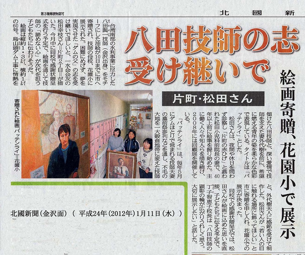 ・ 八田與一技師関連記事 (北国新聞(2012.1.11))