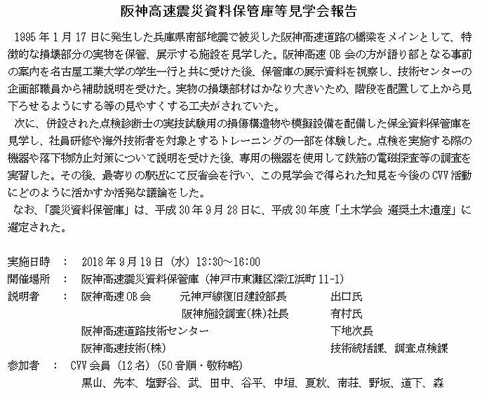 当日、震災資料保管庫のご案内、ご説明を頂いた阪神高速道路関係の皆様に心から御礼申し上げます。