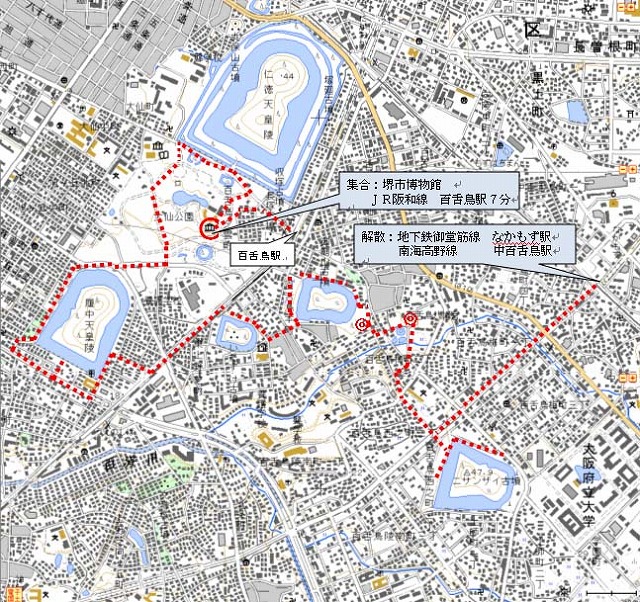 堺市博物館→仁徳陵古墳→履中陵古墳→いたすけ古墳→御廟山古墳→高林家住宅