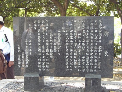 この顕彰碑は、沖縄県から本土に来た人たちを先祖に持つ「具志堅孝司」君の活躍ぶりが
