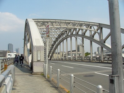 難波泉尾線の橋として架設されたトラス状の鋼アーチ橋で、非常に重厚な感じがします。