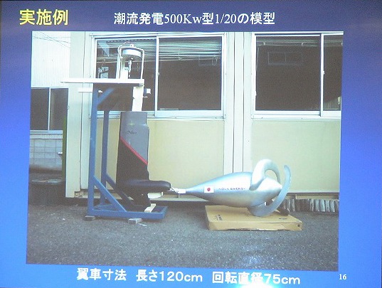 韓国では国が支援して、南岸で2009年3月にイギリス・ルナエナジー社の潮流発電テストプラント 1MWを設置する。 2015年までに現代重工が300基製作し、世界初の大型潮流発電所を稼動させる。 台湾では、台湾エネルギー局の指導で、世界初の黒潮発電所建設、の初期計画に入っている。 日本では文部科学省も経済産業省も何もしていない。国は海洋開発には力を入れず、国策として 自然エネルギー利用より、原子力発電を考えている ノヴァエネルギーは、神戸大学海事科学部の協力の下、単独で潮流発電を開発しており、 韓国南岸のテストプラント2009年3月設置より前に、世界初の実用化を達成したいと 考えている。 |