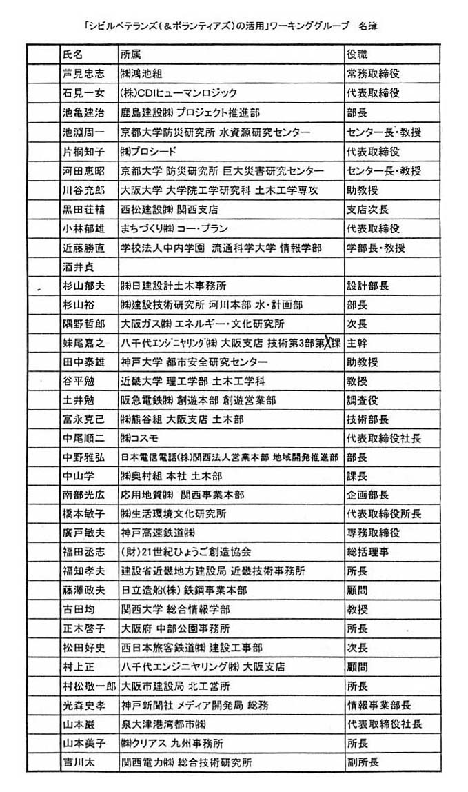 ・ 「シビルベテランズ(&ボランティアズ)活用」のワーキンググループ (名簿)