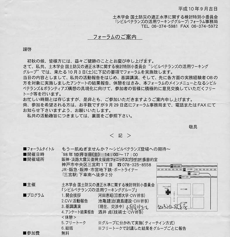 ・ フォーラム(平成10年(1998年)10月3日) (案内状)