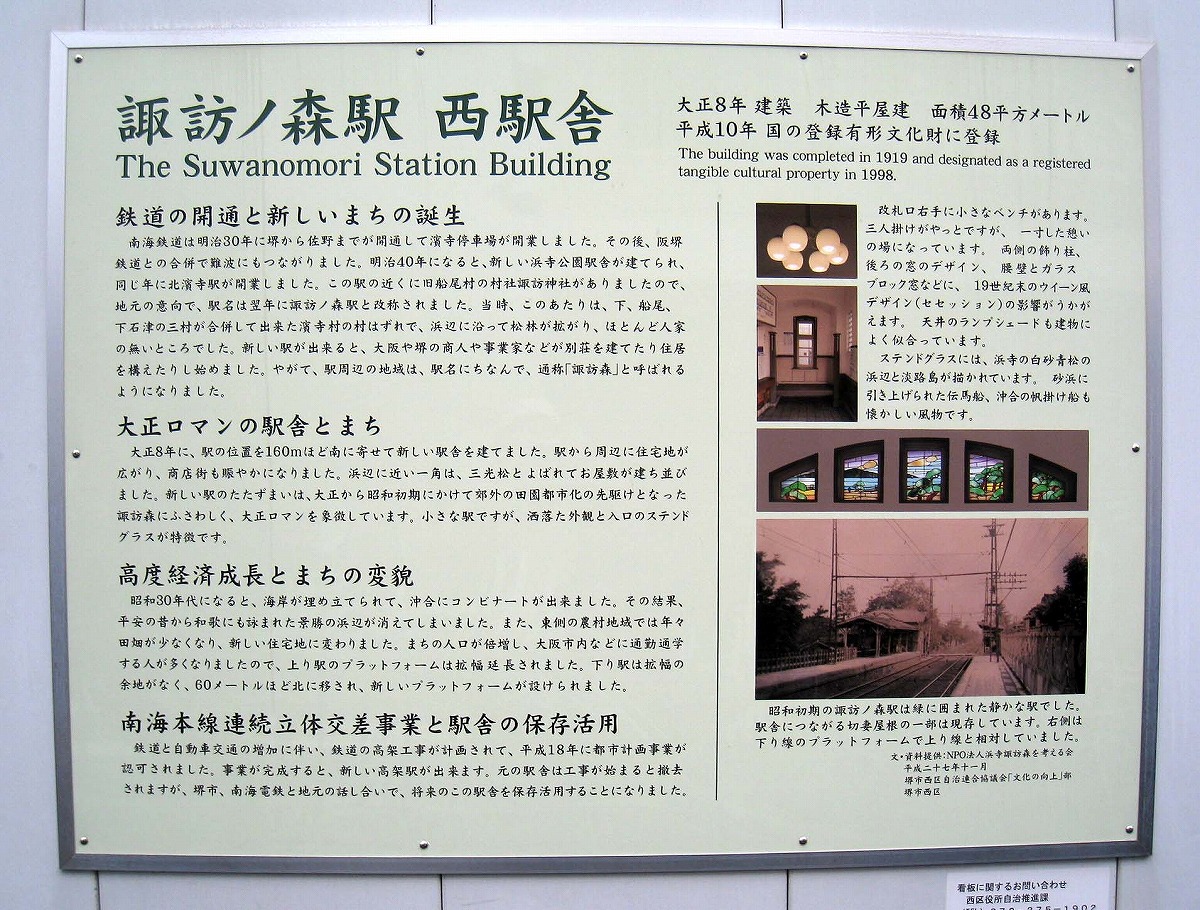大正8年(1919年)に建てれた歴史的建築物である。諏訪ノ森駅は、堺市の連続立体高架化事業で、近い