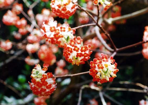 和紙の原料になる<三椏>の花です。京都府加茂町の岩船寺で撮影しました。