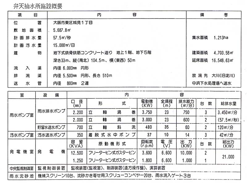 弁天抽水所は、大阪城のすぐ北側、寝屋川と第二寝屋川に囲まれたところにあり、天王寺〜弁天幹線に |